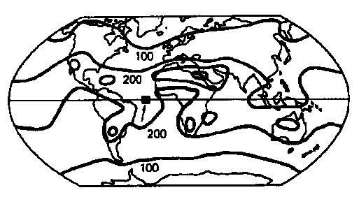 Abb. 1. Linien gleicher Sonnenintensität (W)