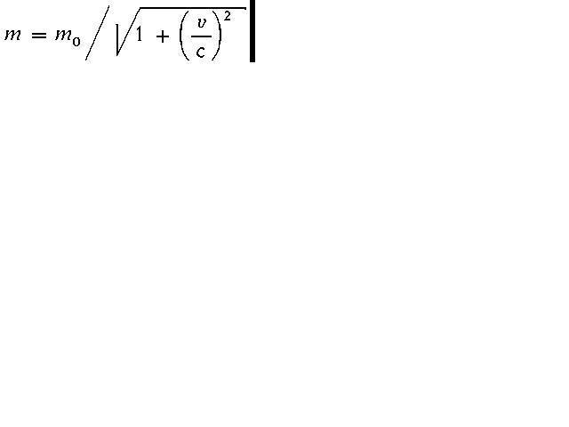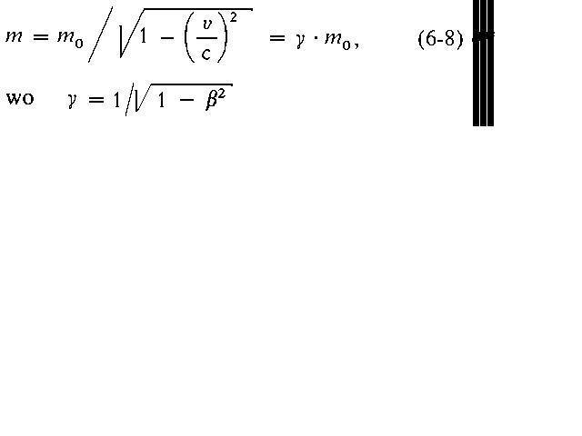 Dieser Ausdruck enthält den bekannten Lorentz-Faktor: Hierin stellt mo die Ruhemasse des Teilchens und m seine geschwindigkeitsabhängige Masse dar, die demgemäß mit der Teilchengeschwindigkeit v ansteigt bis zur Grenzgeschwindigkeit c. Bei v größer als c wird der Wurzelausdruck imaginär. Obwohl diese Rechnung mathematisch einwandfrei durchgeführt wurde, ist sie dennoch physikalisch falsch. Der Irrtum liegt gleich am Anfang in Form eines Vorzeichen-Fehlers. Die Gleichung oben (nach dem Wort Wegen ) muß richtig heißen